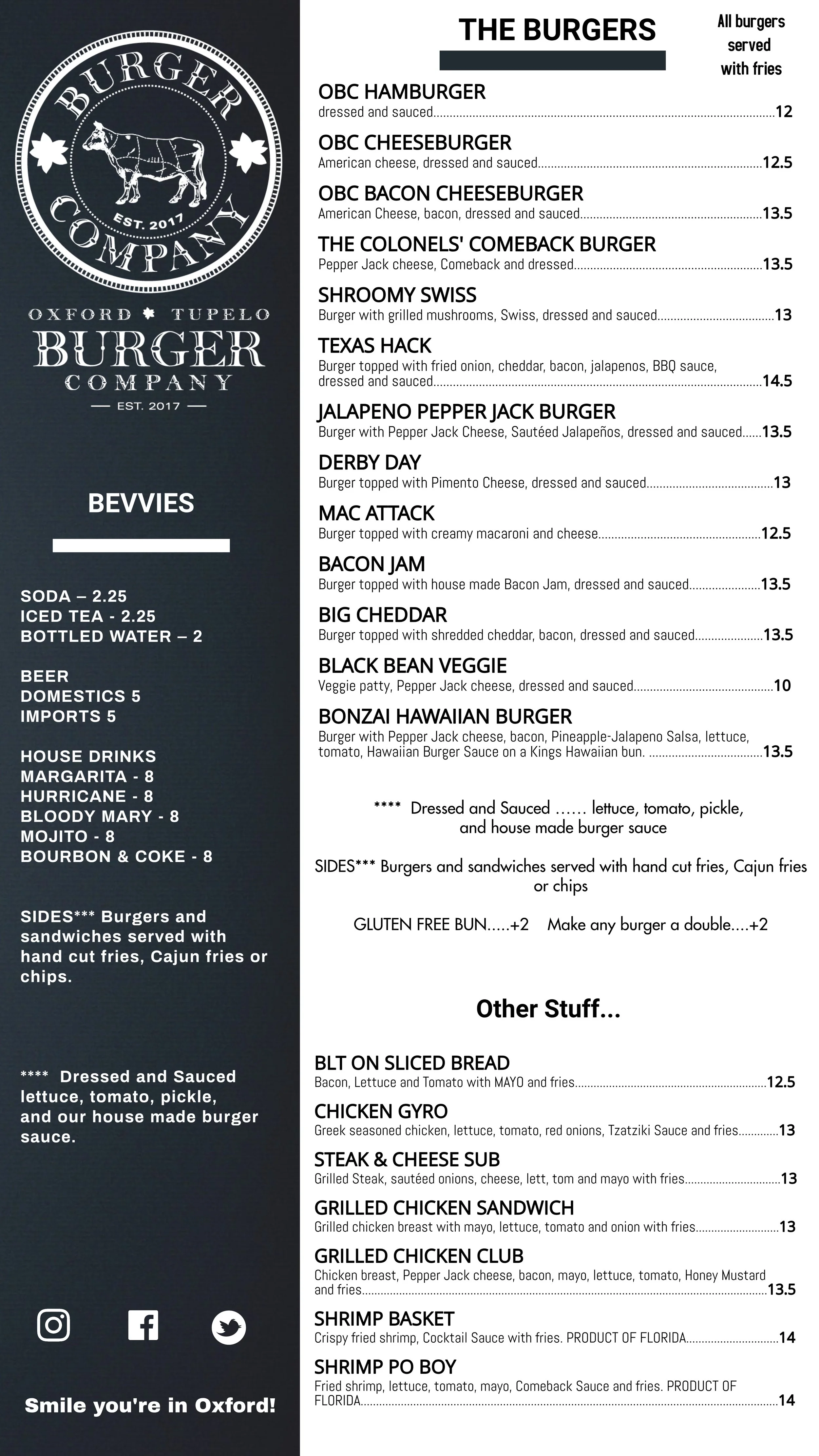 Oxford Burger Co - Menu